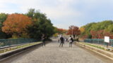 As of November 22, the leaves around the entrance and bridges had turned bright red, but there were still some trees with green leaves like this one.